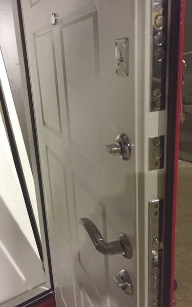 Востребованная модель входных металлоконструкций – уличные двери с терморазрывом. В качестве наружной отделки продукции такого типа применена порошковая окраска, изнутри установлены панели МДФ с филёнчатым рисунком. Цвет и фактуру отделочных материалов выбирает заказчик.